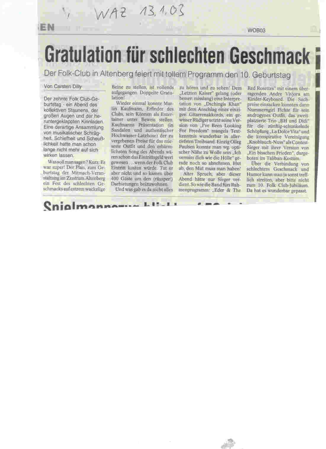 13.1.03 - 10 Jahre Folk Club